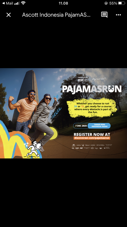 “PajamASRun merupakan ajang lari dengan format baru yang kami hadirkan untuk masyarakat. Dengan kategori jarak yang ramah bagi semua kalangan dan tema piyama yang unik, kami ingin menciptakan pengalaman berlari yang menyenangkan dan sejalan dengan identitas Ascott yang menghadirkan pengalaman nyaman dan berkesan bagi setiap tamu. Lebih dari itu, kegiatan ini juga menjadi wujud komitmen kami untuk lebih dekat dengan masyarakat, sambil mendorong gaya hidup sehat yang mudah dijangkau oleh semua orang,” kata Philip Barnes, Country General Manager The Ascott Limited Indonesia.