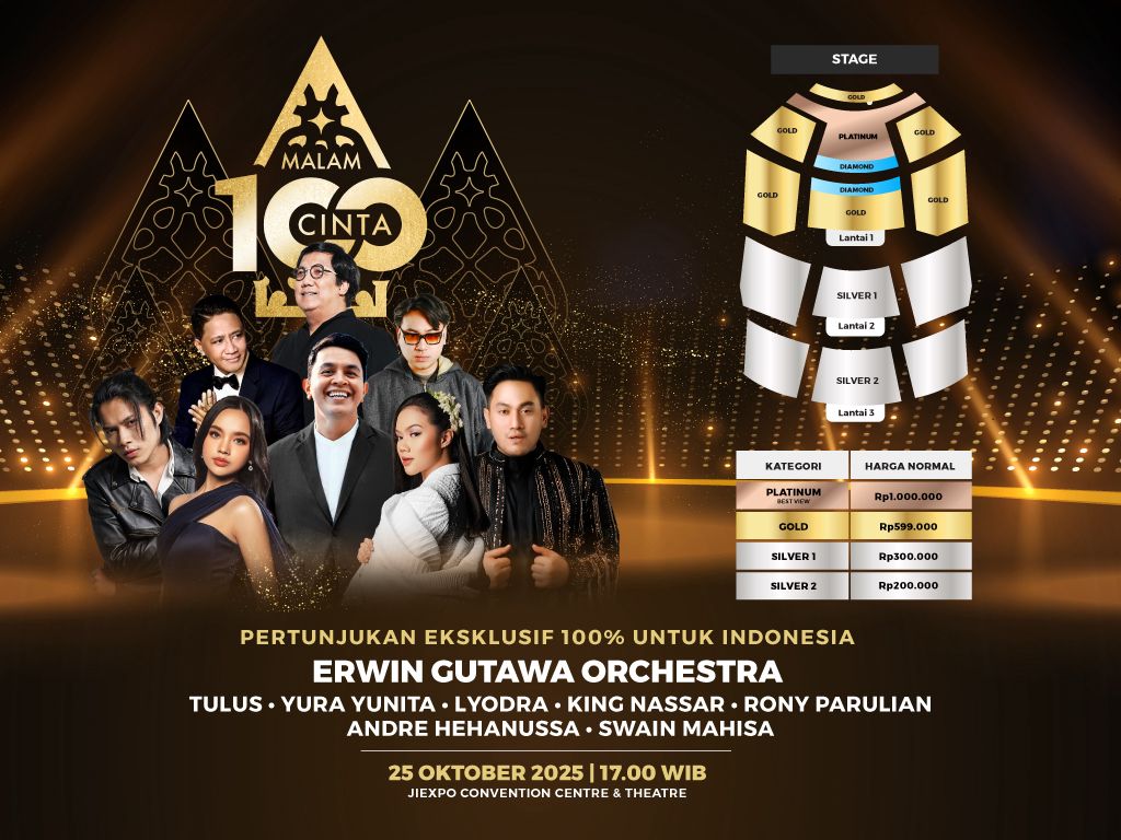 EVENTGUIDE.ID – Pertunjukan “Smartfren Malam 100 Cinta” yang memadukan pagelaran musik, seni dan budaya Indonesia bakal digelar pada Sabtu (25/10/2025) di JIExpo Theater Kemayoran, Jakarta.