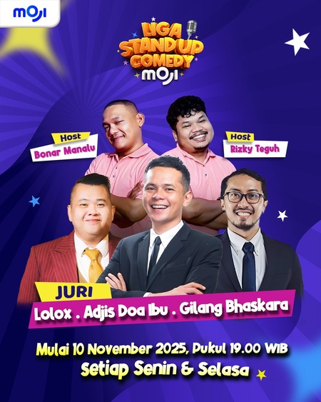 Nantikan Liga Stand Up Comedy Moji setiap hari Senin dan Selasa, mulai 10 November 2025 pukul 19.00 WIB.
