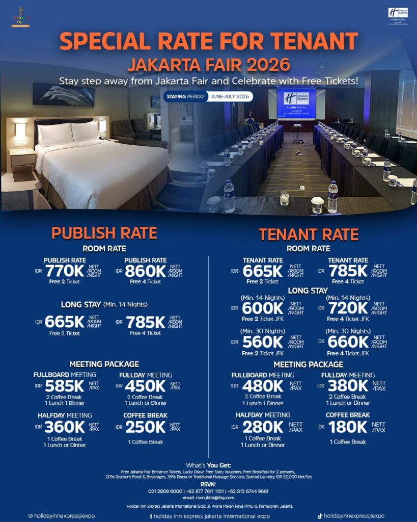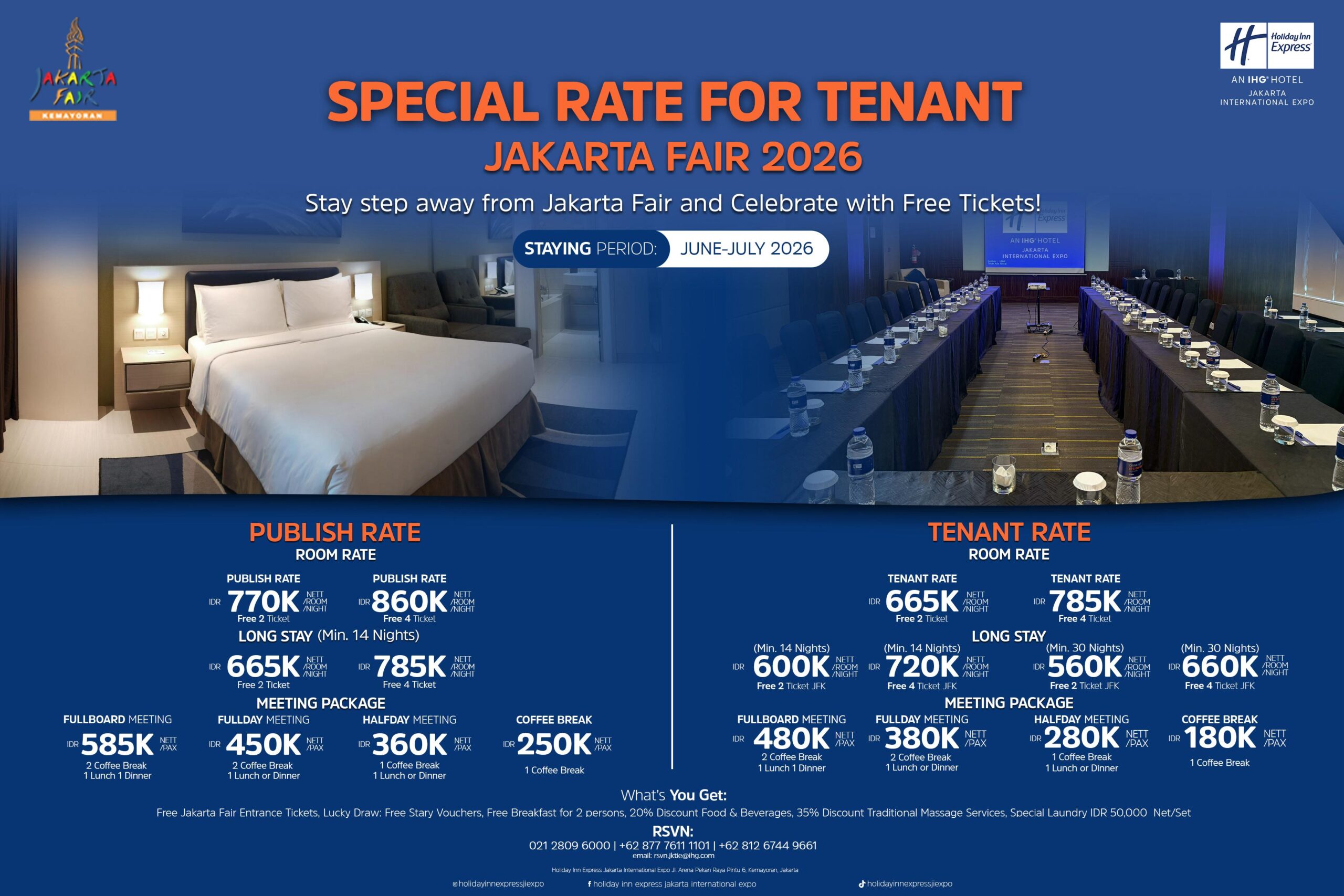 EVENTGUIDE.ID – Holiday Inn Express Jakarta International Expo menyambut pameran dan hiburan terbesar di Asia Tenggara, Jakarta Fair 2026 di JIExpo Kemayoran menghadirkan penawaran eksklusif dengan harga spesial.