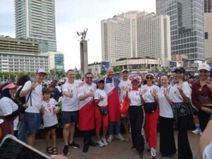 Kegiatan jalan santai sejauh 5 kilometer ini diikuti ratusan peserta, baik warga lokal maupun ekspatriat. Mereka menempuh rute dari Bundaran HI menuju Grand Lucky SCBD, Jakarta.