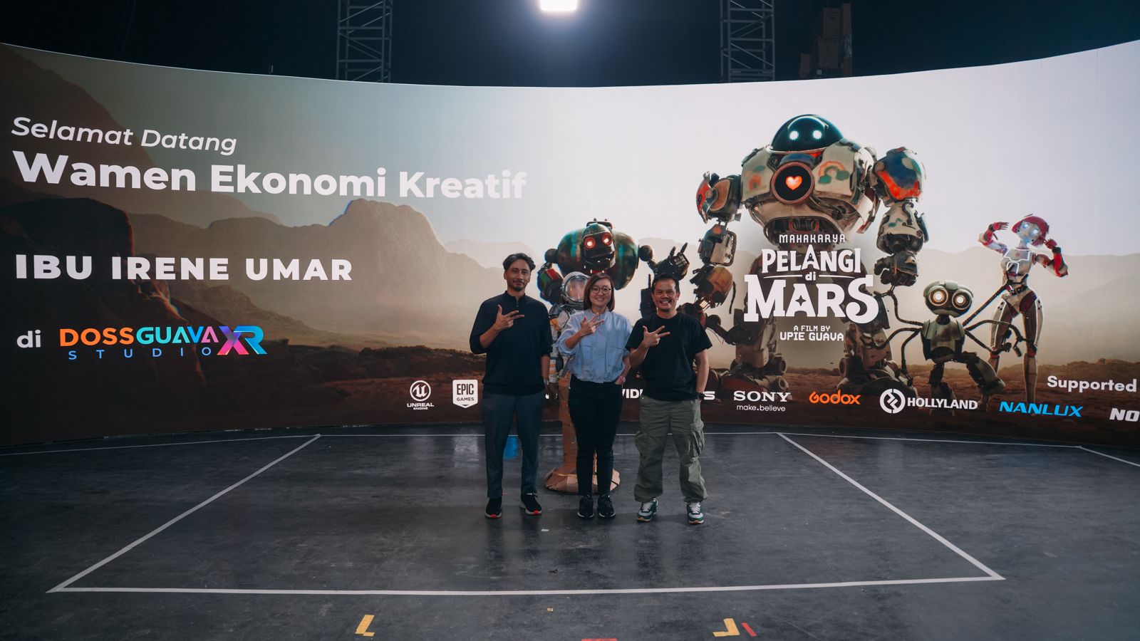 EVENTGUIDE.ID – Proses kreatif di balik layar pembuatan film animasi Pelangi di Mars yang digarap DossGuavaXR Studio ditinjau langsung Wamen Ekraf Irene Umar.
