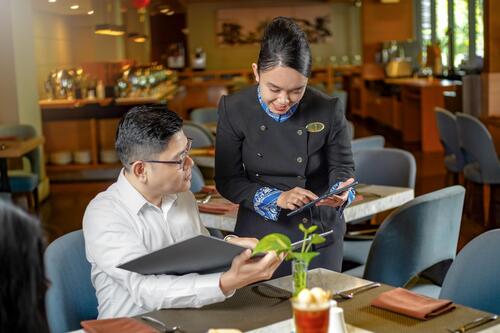 Tersedia beragam hidangan khas Indonesia seperti Kambing Guling, Bakso Iga, Nasi Gudeg, dan Nasi Kapau. Pecinta menu Barat dapat menikmati Salmon En Croute, BBQ Grill, Roasted Beef, serta Mushroom Soup.