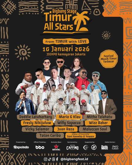 EVENTGUIDE.ID – Big Bang Festival Timur All Stars bakal unjuk karya pada Sabtu, 10 Januari 2026 di panggung besar area Open Space JIExpo Kemayoran, Jakarta.