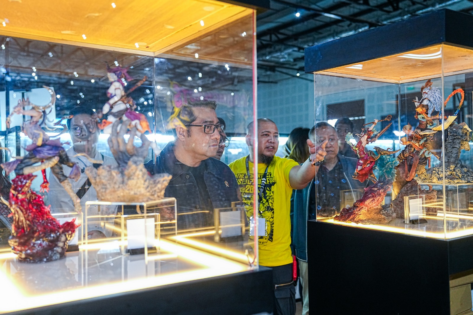 Menteri Ekraf Teuku Riefky dalam kunjungannya menyempatkan diri meninjau berbagai booth IP lokal, mulai dari BumiLangit Universe, Almanak Ghoib, Beastnolyze, Eastwood.Gun, dan lainnya.
