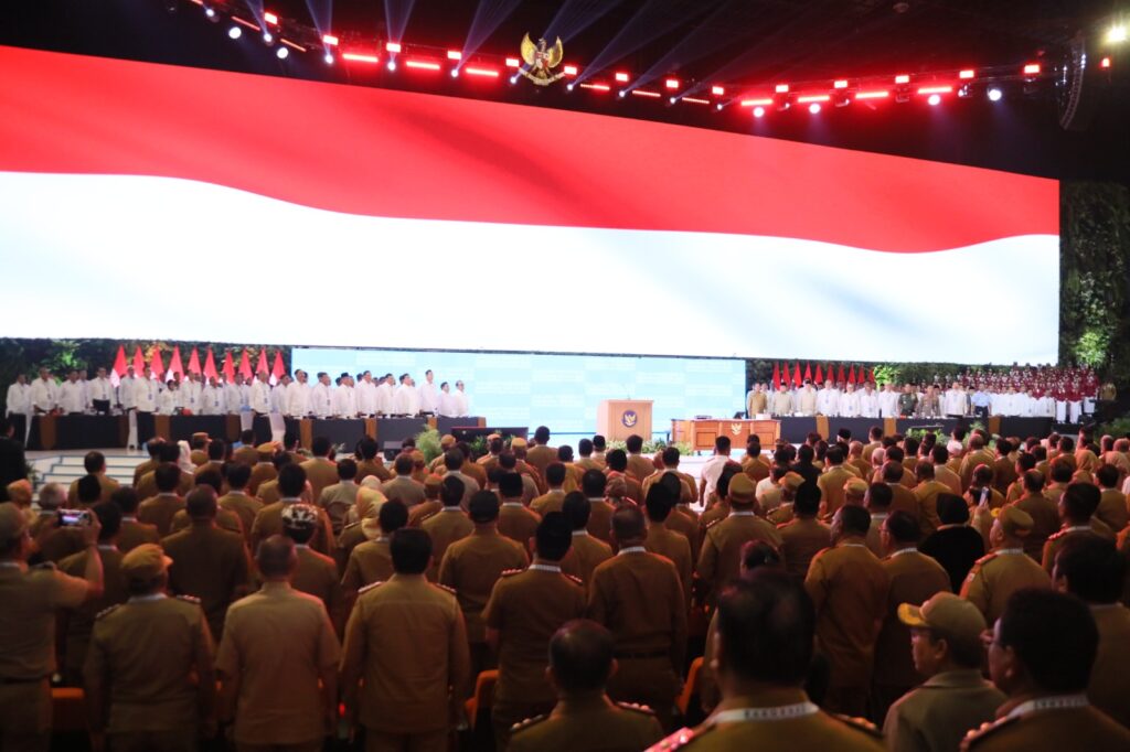 Rakornas yang mengusung tema “Sinergi Pusat dan Daerah dalam Implementasi Program Strategis Presiden Menuju Indonesia Emas 2045” dibuka Presiden Republik Indonesia Prabowo Subianto.