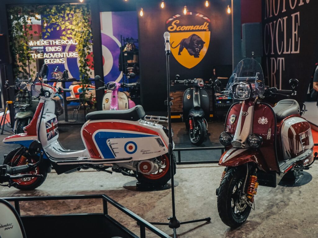 Pusat perhatian di stan Scomadi adalah debut global Scomadi Turismo Technica 200w “Crown” Edition. Mahakarya eksklusif ini hanya diproduksi terbatas sebanyak 100 unit, menjadikannya barang koleksi yang sangat berharga.