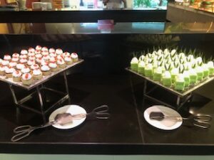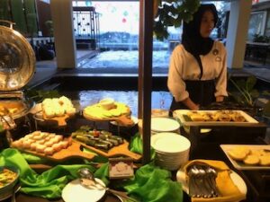 Untuk hidangan penutup, tamu dapat menikmati beragam jajanan pasar tradisional, Es Campur, serta pilihan aneka French cake tersedia setiap hari.