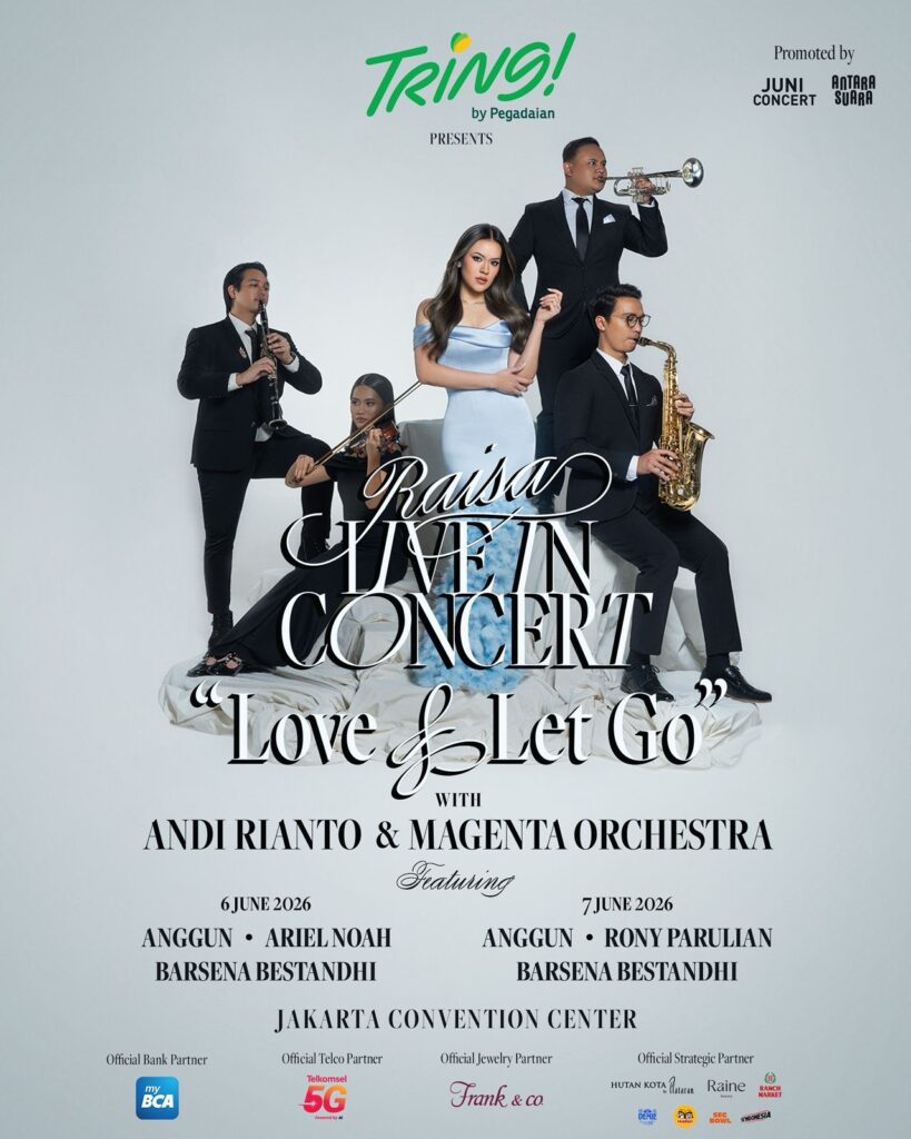 Tring! by Pegadaian Presents Raisa Live in Concert: Love & Let Go” akan diselenggarakan pada 6 & 7 Juni 2026 di Jakarta International Convention Center.
